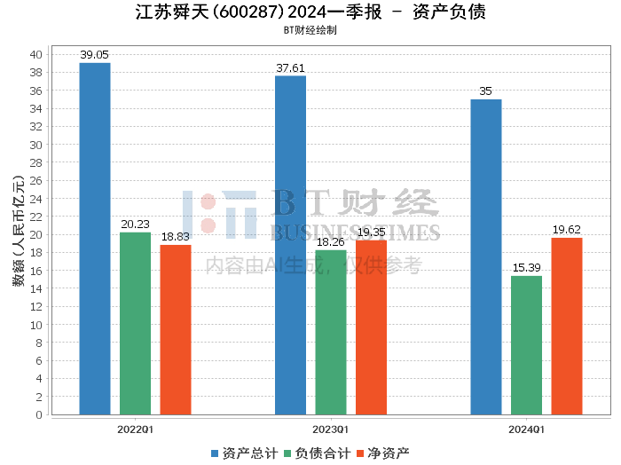 从资产负债数据来看,江苏舜天在2024年一季度末的资产总计为35亿元,较期初的34.53亿元增长了1.35%。负债合计从期初的14.71亿元增加到期末的15.39亿元,增长了4.56%。资产负债率从期初的42.61%上升到期末的43.95%,显示出公司在扩展业务的同时也增加了负债。尽管负债有所增加,但公司的资产负债率仍处于合理范围内,表明公司在财务杠杆的使用上较为谨慎。