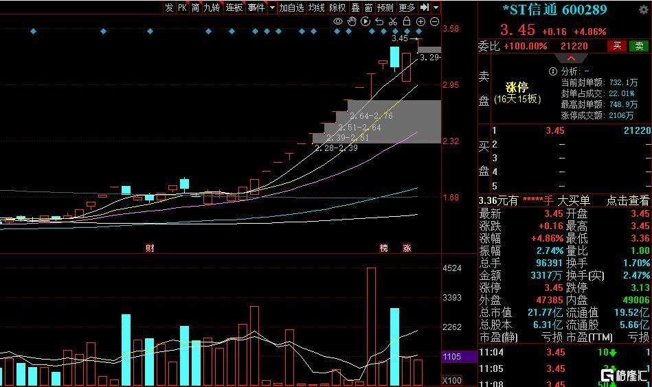 然而,市场资金偏偏表现的就是不信“这个邪”,2月11日,*ST信通延续强势,继续涨停,虽一度开板,但很快继续封死,直接走出15天14板。