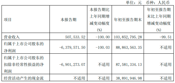 10月29日,*ST西水(SH600291)公告,2021年第三季度营业收入约50.75万元,比上年同期减少100%,归属于上市公司股东的净利润亏损约637.96万元,比上年同期减少100.03%;前三季度营业收入约1.04亿元,比上年同期减少99.51%,归属于上市公司股东的净利润约8886.36万元。
