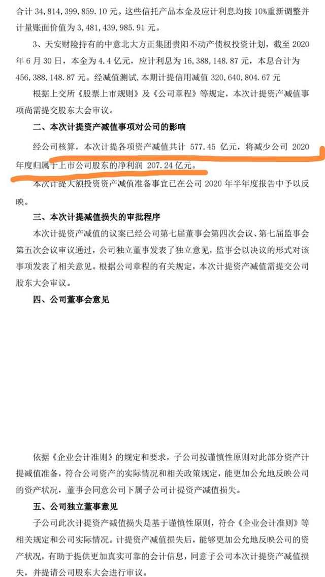 2020年中资产减值达到577.45亿元,减少净利润207.24亿元。