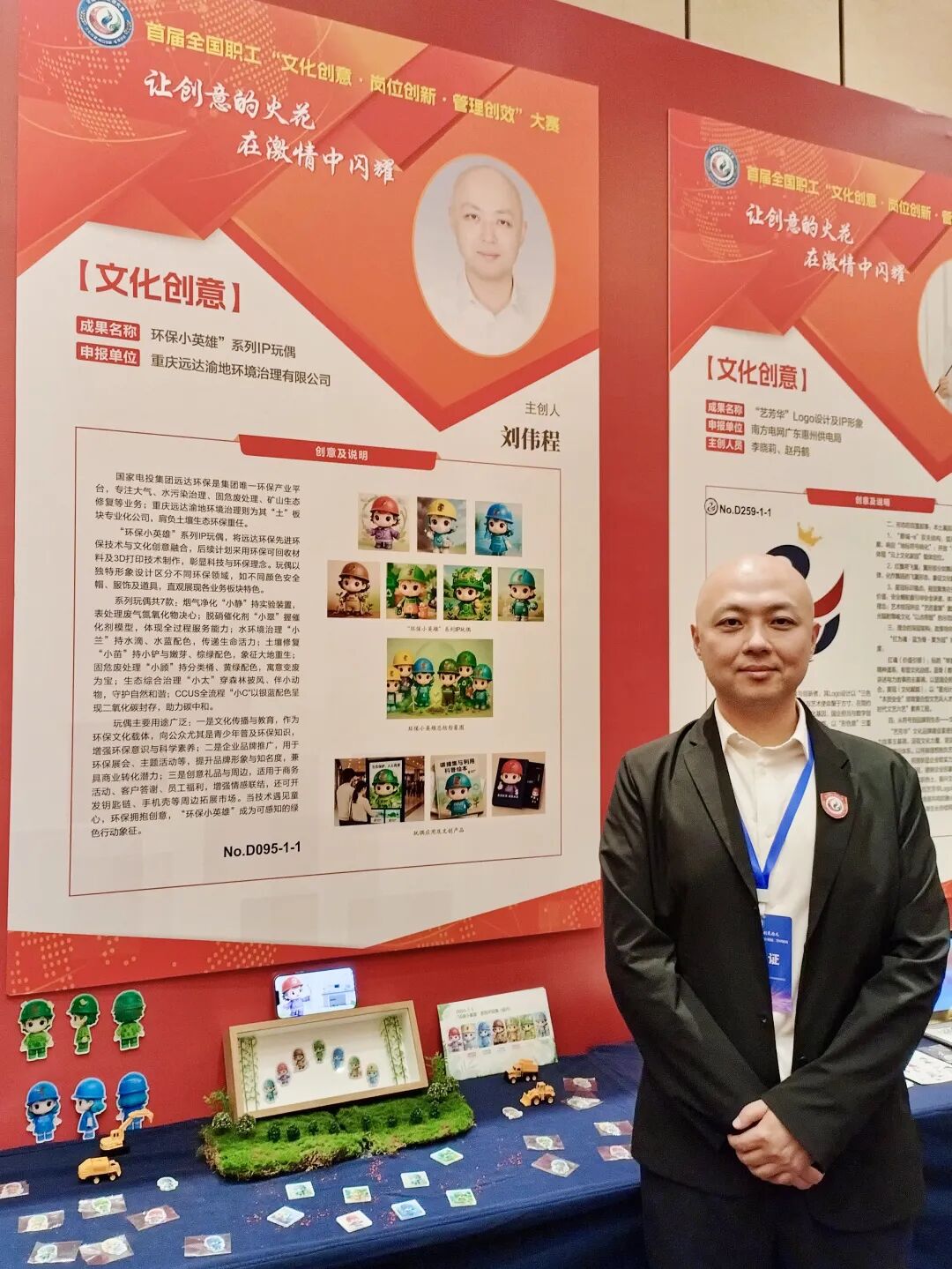 远达环保渝地公司职工刘伟程的参赛作品《“环保小英雄”系列IP玩偶(设计)》从众多作品中脱颖而出,荣获“文化创意”成果二等奖。