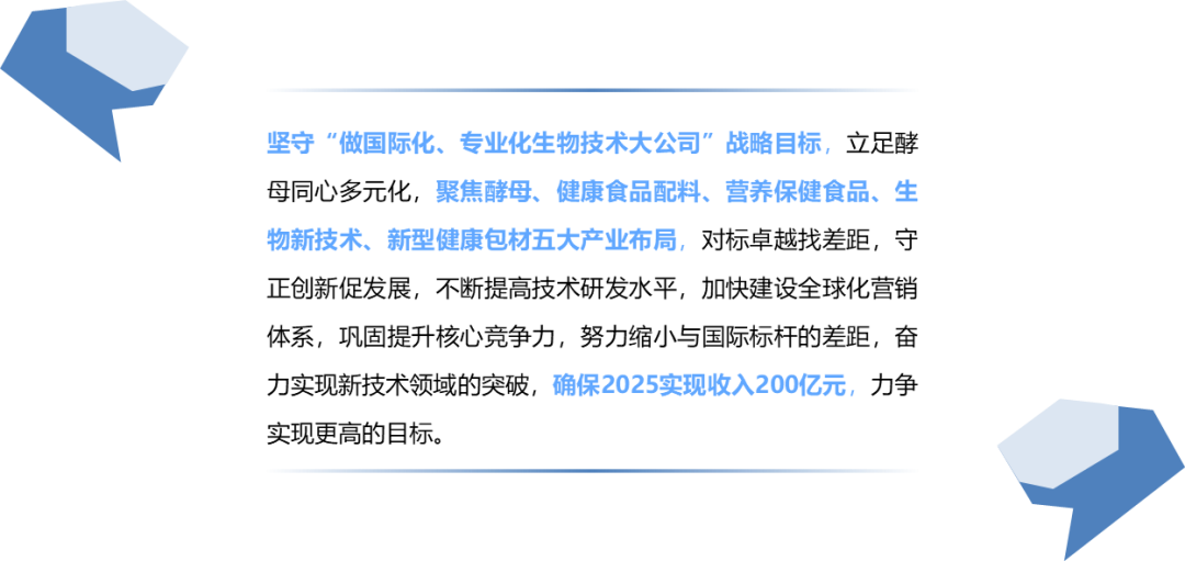 其核心主业是酵母、酵母衍生物及其相关生物制品的经营。在总体战略布局上,进入“十四五”,也制定了宏伟的发展蓝图。
