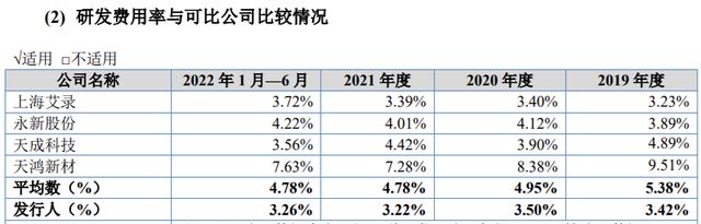 与可比同行业公司研发费用率均值相比,宏裕包材也长期处于较低水平。