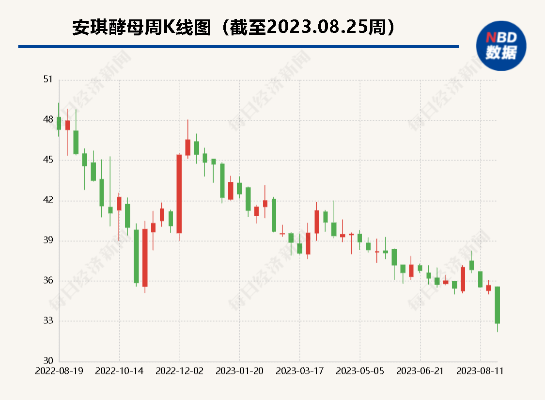 值得一提的是,今年以来,安琪酵母的股价表现也不佳。相比去年末的45.22元/股,8月25日盘中一度探至32.2元/股,跌幅已达28.79%。