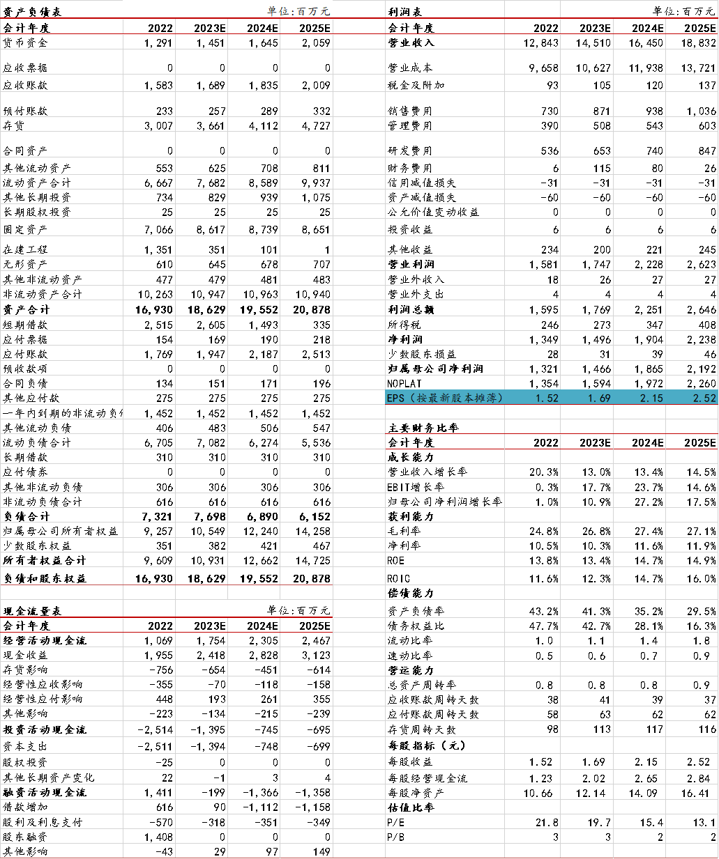 | 图表1:安琪酵母三大财务报表预测(单位:百万元) |