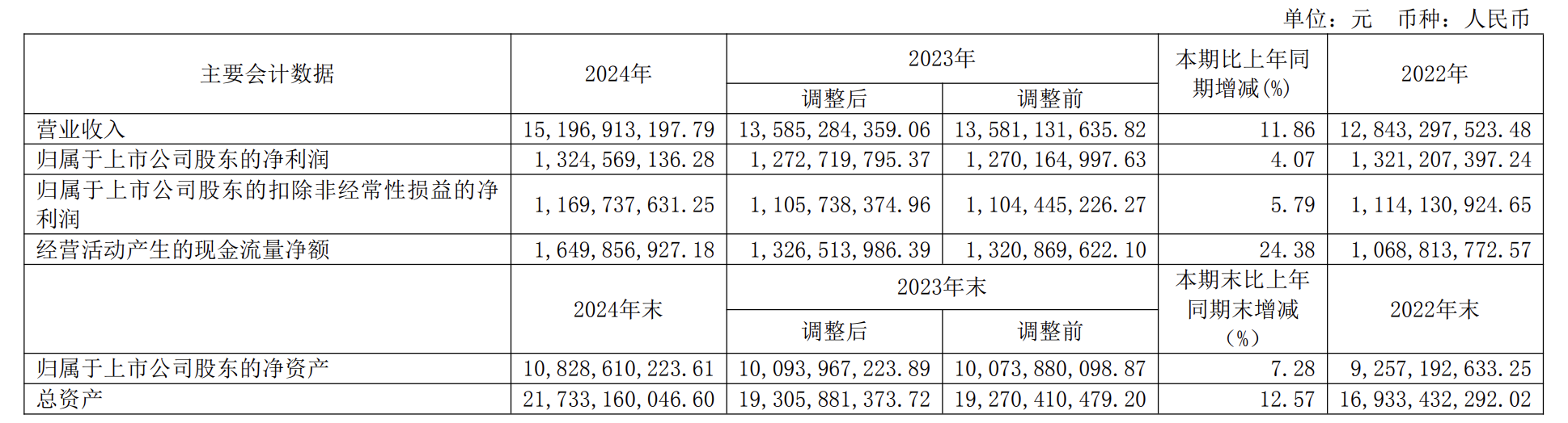 近日,安琪酵母(600298)公布2024年年报,2024年,公司实现营业收入151.97亿元,同比增长11.86%;实现净利润13.25亿元,同比增长4.07%;实现扣非归母净利润为11.7亿元,同比增长5.79%;基本每股收益1.55元,同比增长4.73%。公司拟向全体股东每股派发现金红利0.55元,合计派发4.77亿元。