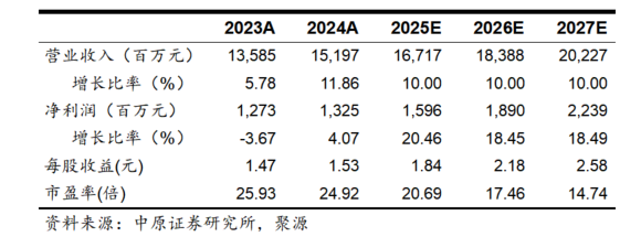 投资评级:我们预测公司2025、2026、2027年的每股收益为1.84元、2.18元和2.58元,参照6月3日收盘价38.02元,对应的市盈率分别为20.69倍、17.46倍和14.74倍,维持公司“增持”评级。