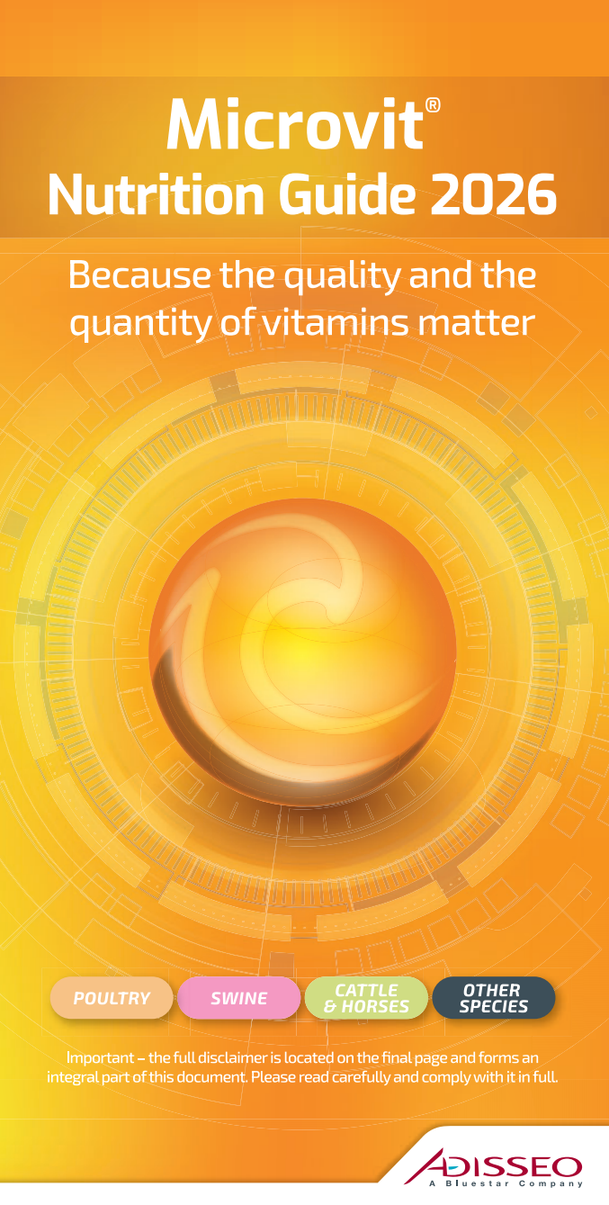 此外, 安迪苏 于近期正式发布最新版《麦可维?营养指南》,为全球饲料制造商提供科学、系统化的维生素营养补充参考。该指南整合了过去三十年的科学研究成果、技术文献以及 安迪苏 自身的研发数据与实践经验,全面梳理了维生素A、D3、E、K3等脂溶性维生素,以及B族维生素、维生素C等关键水溶性营养素在饲料中的推荐添加范围。新版指南覆盖家禽、猪、反刍动物、马、宠物及水产动物等18个物种,并依据不同生长阶段细化出35张推荐用量表格。与以往版本相比,该指南进一步扩展了动物种类和生产阶段的分类,同时结合当前饲料效率水平和新型配方技术(如高剂量植酸酶的应用),对推荐数值进行了全面更新,使其成为目前涵盖物种最广、科学依据最为充分的维生素营养参考工具之一。