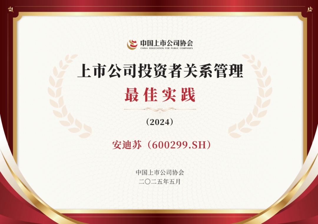 2025年是资本市场深化改革、推动上市公司高质量发展的关键之年。安迪苏(股票代码:600299.SH)积极完善治理结构,持续加强投资者关系管理,全方位提升企业内在价值与品牌影响力。今年以来,公司接连荣获多项权威奖项,覆盖投资价值、公司治理、品牌实力、ESG表现等多个维度,综合实力再获市场与专业机构高度认可。