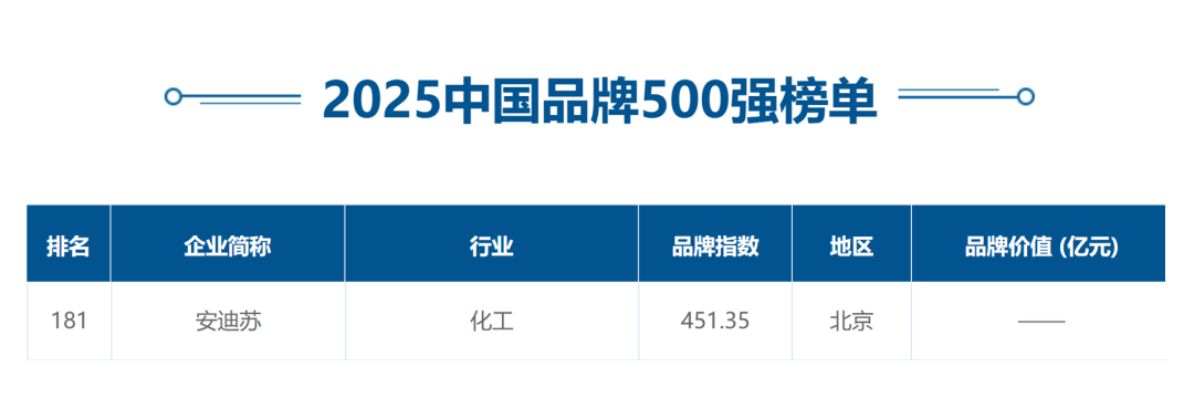 在品牌评估机构Asia Brand最新公布的“2025年中国品牌价值500强”中,安迪苏实力登榜。这不仅反映了安迪苏在品牌建设上的持续投入与显著成效,也意味着公司市场声誉、行业影响力及成长潜力已赢得专业机构的肯定。品牌价值的提升,将为公司拓展全球合作、推动可持续发展注入强劲动力。