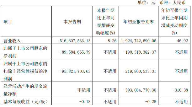 10月28日,曙光股份(SH600303)公告,第三季度营业收入约5.17亿元,比上年同期增加8.26%,归属于上市公司股东的净利润亏损约8958.47万元,归属于上市公司股东的扣除非经常性损益的净利润亏损约9582.17万元,基本每股收益亏损0.13元/股,总资产约47.69亿元,比上年同期减少6.76%。