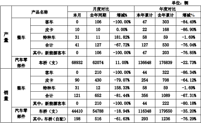 ST曙光4月10日公告,公司第一季度整车销量合计356辆,同比下滑67.31%。