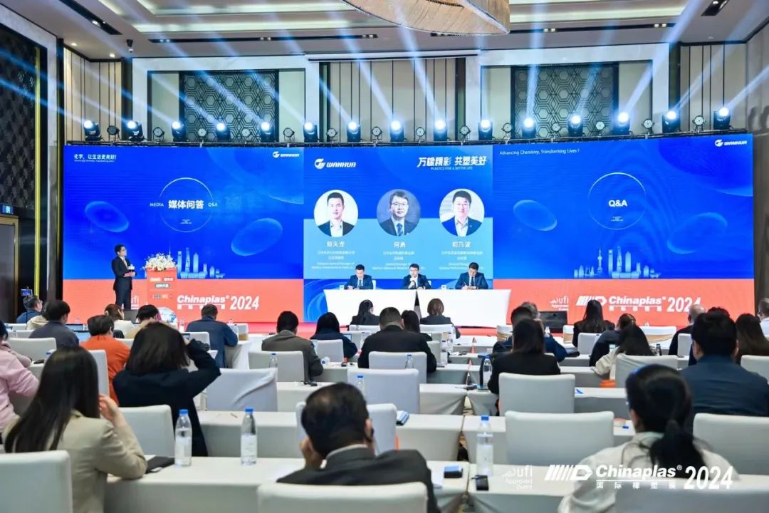 4月22日,万华化学携多款可持续前沿产品亮相“CHINAPLAS 2024 国际橡塑展媒体日新闻发布会”,并为行业分享公司可持续发展战略。万华化学新材料事业部总经理何勇,高性能聚合物事业部总经理初乃波,石化销售公司总经理助理郑天龙以及新材料事业部POE及PMMA销售经理姜皓出席发布会。以“万橡精彩,共塑美好”为主题,本场发布会展示了公司的突破性技术和创新材料解决方案,并重点推介POE产品。