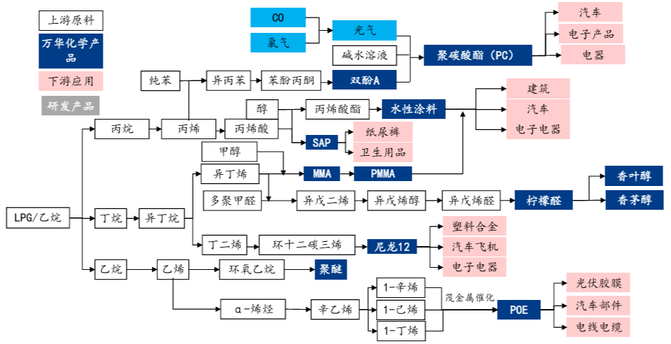 万华下一阶段发展重心或将向下游新材料与精细化工转移。