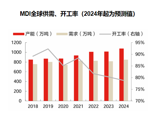 *数据来源:聚氨酯工业协会,天天化工网,东方证券研究所;以2023年全球MDI约815万吨的实际需求为基准来计算,到2027年,这一需求量将逼近1000万吨。