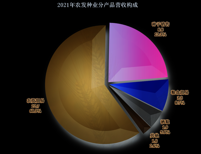 从2021年分产品的销售数据来看,农发种业的“种子销售”业务占比仅为23.3%,第一大业务是农资贸易。农资贸易受到疫情的影响就比较好理解了,他们的种子业务其实一直发展得还不错。