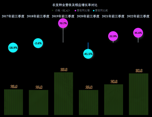 农发种业已经是连续两个前三季度营收同比增长了,但是仍然没有超过疫情前,也就是2019年前三季度的水平,只是2022年前三季度,与峰值时的差距已经不大了。