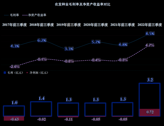 前三季度的净资产收益率4.7%,年化也就6%出头,这个水平只能算一个及格的表现。农业企业就是这样,全球都靠补贴在生存和发展,我们就不要指望他们能像芯片一样赚钱了。