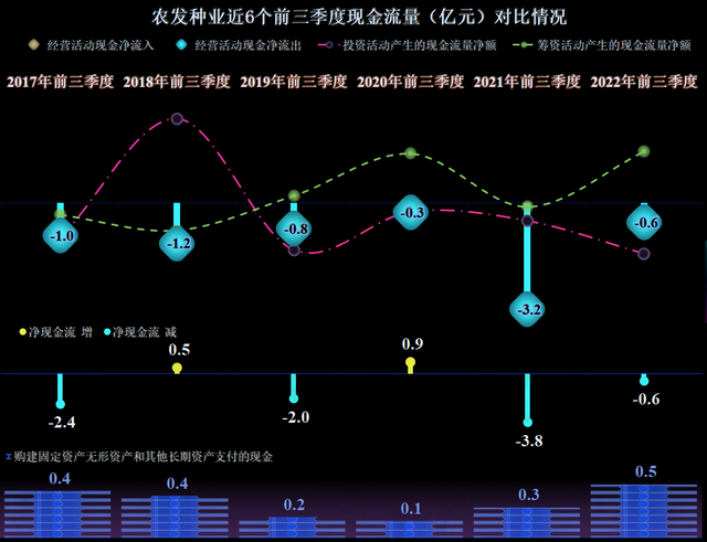 现金流量方面表现得也比较平庸,并没有随着2022年前三季度的盈利,而把经营活动的净现金流也扭转为净流入,但是净流出的规模在下降,而且我们看过其年度数据,一般都还是能净流入的。