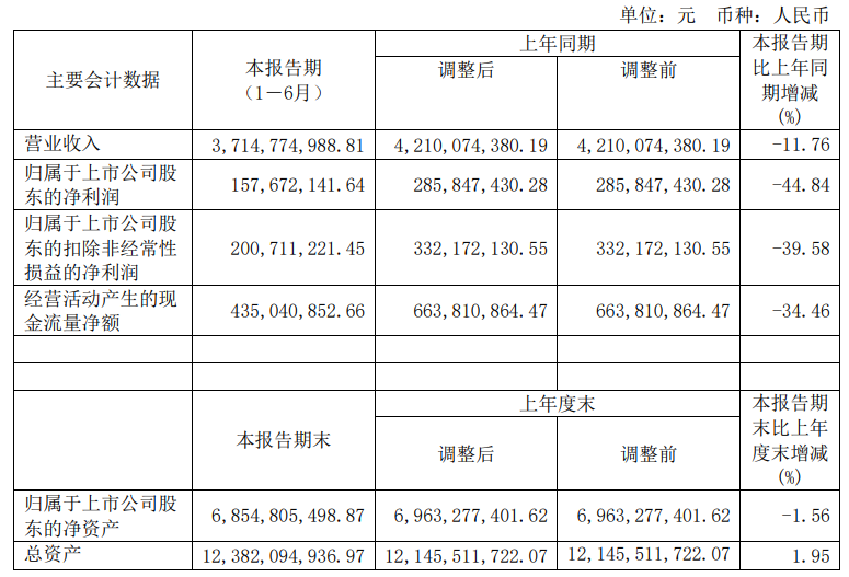 报告期内,上海家化营业收入37.15亿元,同比下降11.76%,扣非净利润2.01亿元,同比下滑39.58%,经营活动产生的现金流4.35亿元,同比下降34.46%。