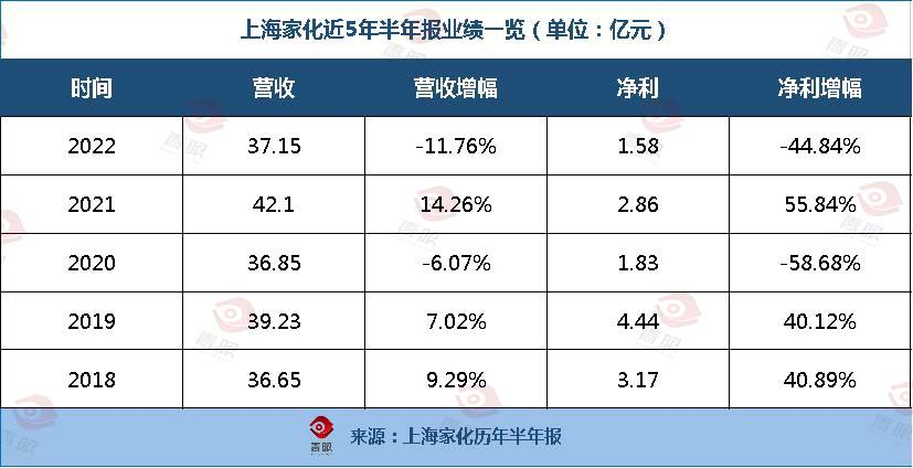 今日下午,上海家化发布2022年半年报显示,公司实现营业收入37.15亿元,同比下降11.76%;归母净利润1.58亿元,同比下降44.84%。