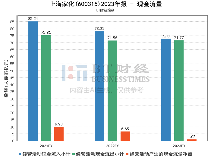 综合来看,上海家化在2023年的经营状况呈现出稳中有降的态势。在营业收入下降的背景下,公司通过有效的成本控制和内部管理,实现了净利润的增长。然而,现金流量的大幅下降和扣除非经常性损益后的净利润下降,反映出公司在经营活动中可能面临的一些挑战。