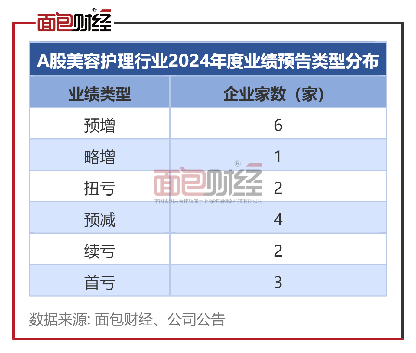 根据申万一级行业分类,截至2025年2月14日收盘,共有18家美容护理行业A股上市公司披露2024年业绩预告。