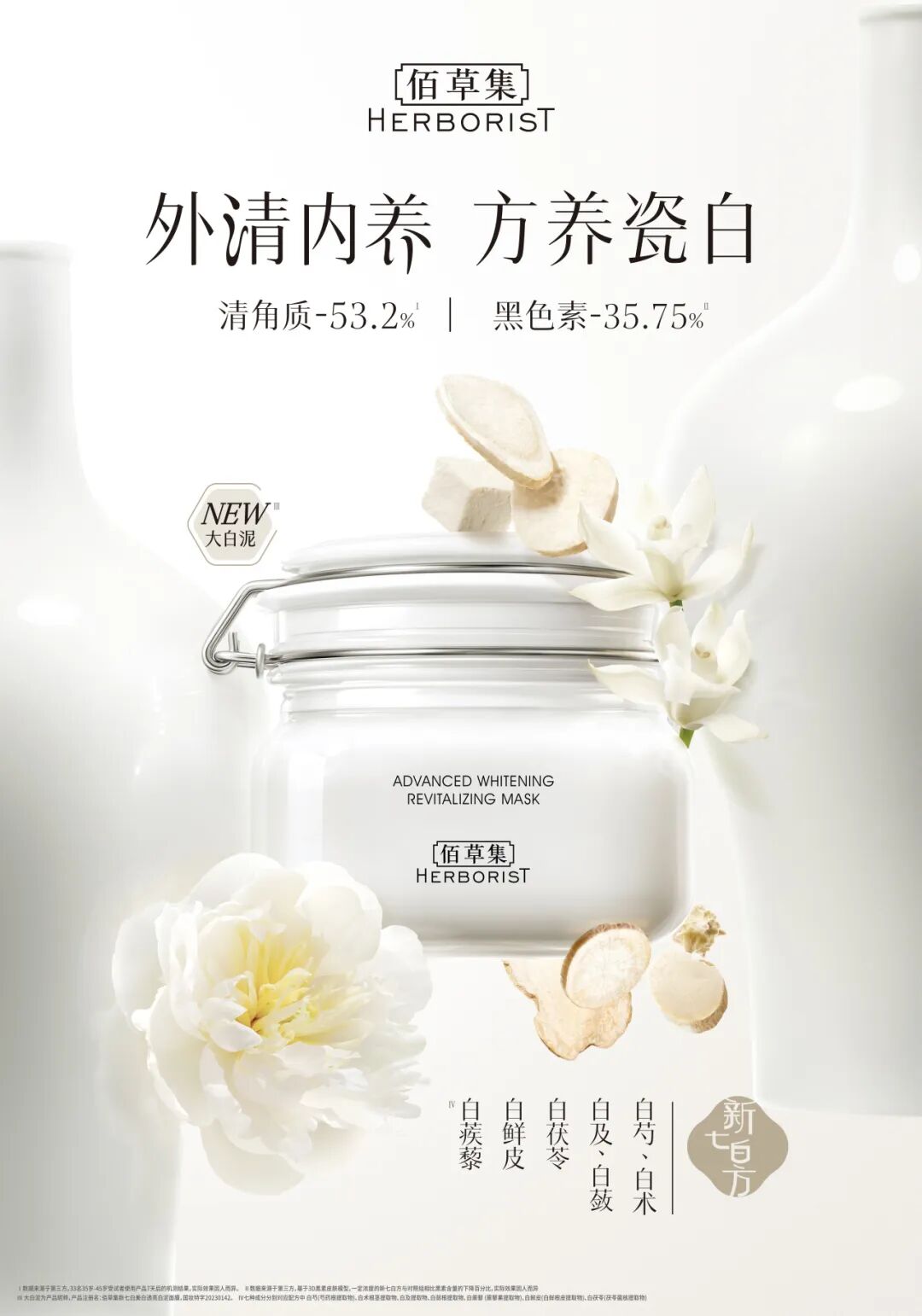 佰草集 新七白大白泥,从古方《七白膏》中汲取组方灵感,秉承以白养白君臣佐使的中医理论,甄选君药白芍、臣药白茯苓、佐使白及等七味本草,凝炼成「新七白方」。以草本之力,外御黑内源焕白,厚敷时丝滑沁肤,洗净后肌肤透亮细腻,稳白如瓷。
