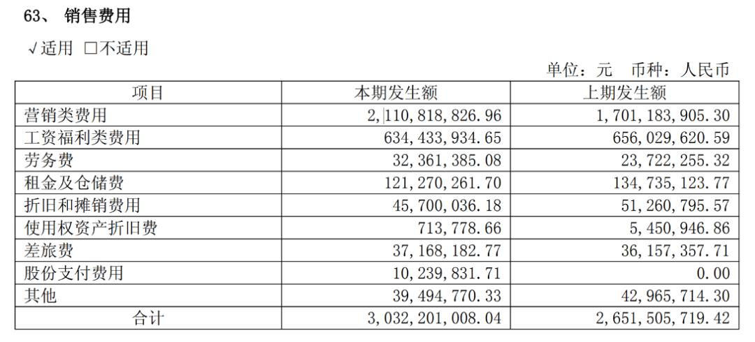 2025年上海家化销售费用高达30.32亿元较上一年同期的26.52亿元增长14.3%,增长数额为3.8亿元,其中主要是来自于营销类费用,从17亿元增长到21.1亿元,增长数额为4.1亿元。