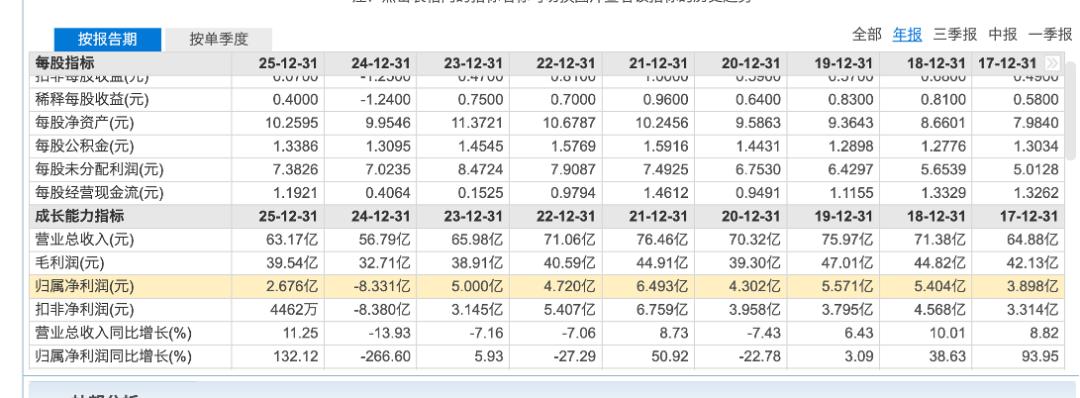 第二,2025年扭亏为盈,扣非后净利润为4462万元,这一数额远比过去几年要低。2023年、2022年、2021年的扣非后净利润分别为3.15亿元、5.4亿元和6.76亿元