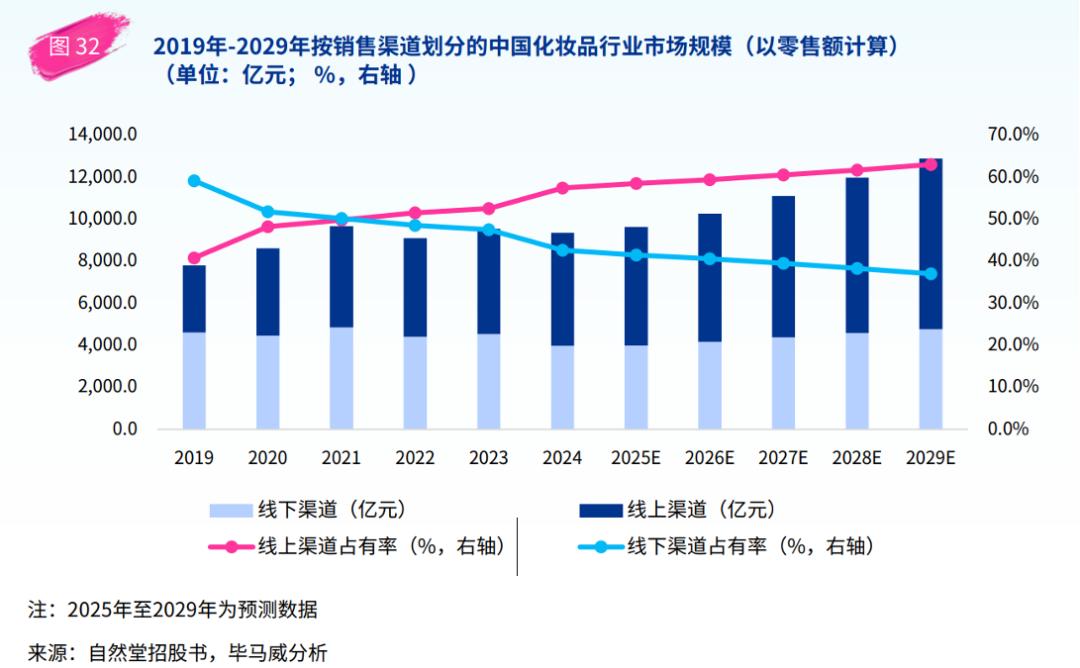 (国内美妆线上线下销售占比情况)