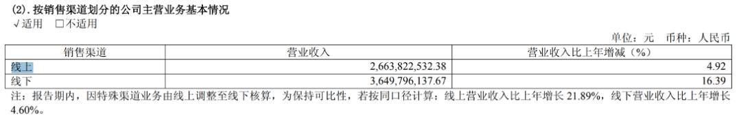 剔除掉特殊渠道口径变动的影响,线上营造同比增长为21.89%,线下营收同比增长仅为4.6%。