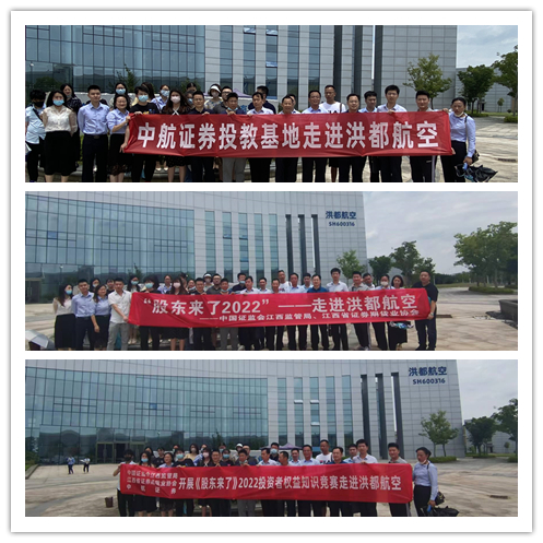 为进一步推广《股东来了》2022投资者权益知识竞赛,带领投资者深入感受江西红色文化及航空文化,接受爱国主义教育。在江西证监局及江西省证券期货业协会的指导下,中航证券国家级投教基地在“七一”建党节前夕,开展了主题为“《股东来了》2022投资者权益知识竞赛——走进洪都航空”的活动,30余名投资者参与了本次活动。