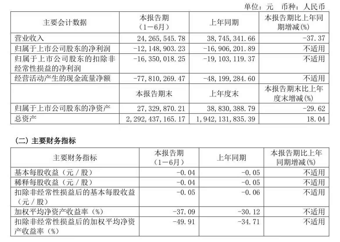 8月30日下午,*ST亚星(SH600319)发布2021年半年度报告,报告显示,2021年上半年,公司实现营业收入2426.5万元,比上年同期减少37.37%;归属于上市公司股东的净利润为-1635万元,上年同期为-1690.6万元;扣除非经常性损益后归属于上市公司股东的净利润-5195.3万元,上年同期为-1910.3万元;经营性净现金流量-7781万元;基本每股收益-0.04元,上年同期为-0.05元。
