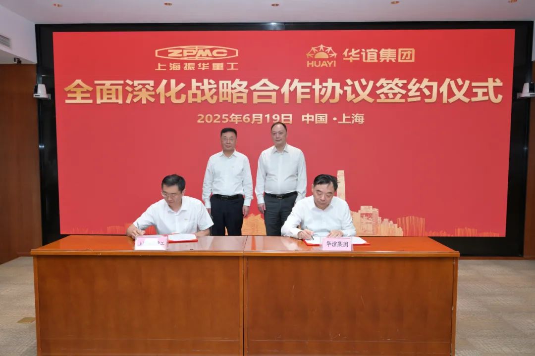 6月19日,上海振华重工集团与上海华谊集团签署全面深化战略合作协议,标志着双方进入全方位多领域的战略合作新阶段。上海华谊集团党委书记、董事长顾立立,党委副书记、副总裁李良君,党委委员、副总裁顾春林,上海振华重工集团党委书记、董事长由瑞凯,党委副书记、副总裁刘峰,副总裁、总经济师李瑞祥等出席签约仪式。