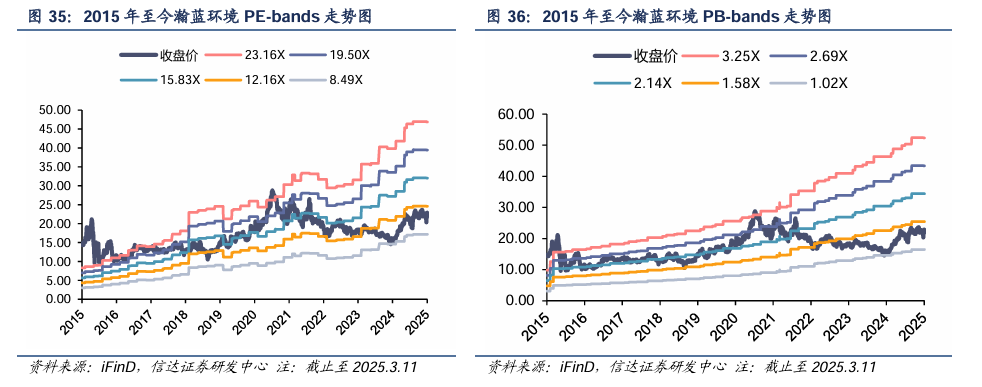 2013-2015年,涨估值+涨业绩。2014年公司收购创冠环保100%股权,实现了业务布局从佛山市南海区面向全国的发展,固废业务扩张到全国多个省市,垃圾焚烧发电规模从 3000 吨/日增加到 14350 吨/日。叠加2015年牛市行情,公司2015年中股价较2013年中股价上涨158.3%,其中业绩增长贡献36.3%、估值上涨贡献63.7%,PE最高达到55x。2015H1后估值逐步回落至15x-20x。