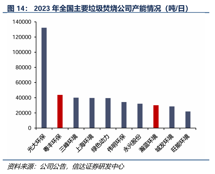 3.2.1瀚蓝环境垃圾焚烧规模扩张至9万吨/日,稳居行业第一梯队