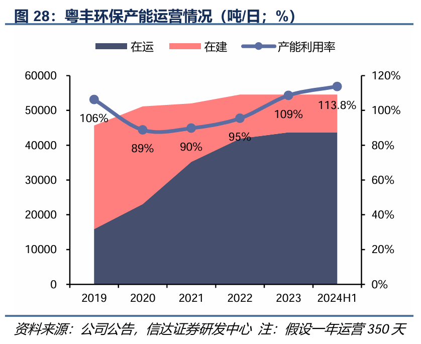 如果合并完成,瀚蓝环境在运规模将由约3.1万吨/日提升至7.43万吨/日,增幅为143%,有望位列A股第一。截至2024Q3,瀚蓝环境垃圾焚烧发电规模35750吨/日,其中在运30600吨/日,在建项目规模650吨/日。若成功收购粤丰环保,瀚蓝环境在运垃圾焚烧规模达到7.43万吨/日,在手项目规模超过9万吨/日。垃圾处理规模位列国内行业前三,有望至A股上市公司首位。