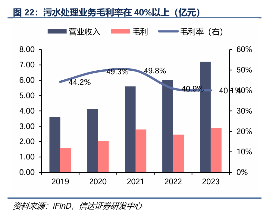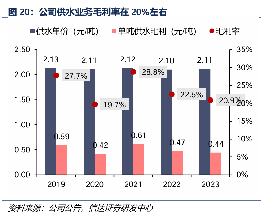 受到供水成本提升影响,毛利率小幅下滑。2022年受到有效需求不足影响,南海区售水量及售水单价均有所下滑,但电费、药剂费、维修费等仍有上涨,因此毛利率略有下滑,2023年公司供水业务毛利率保持在20%。