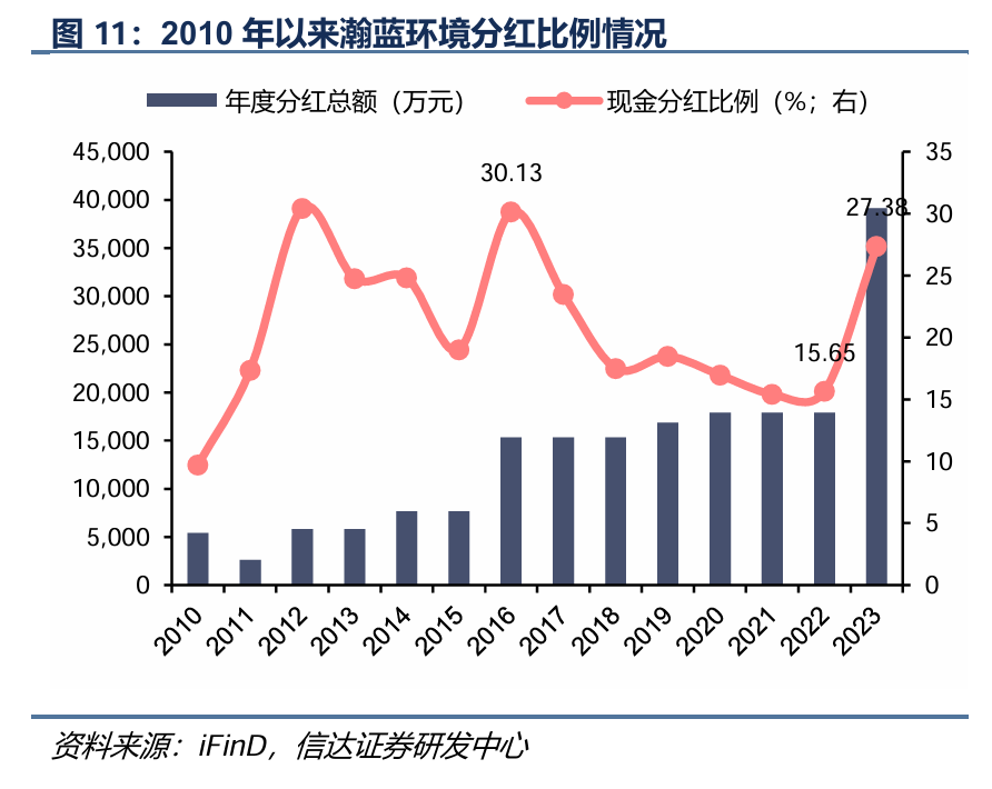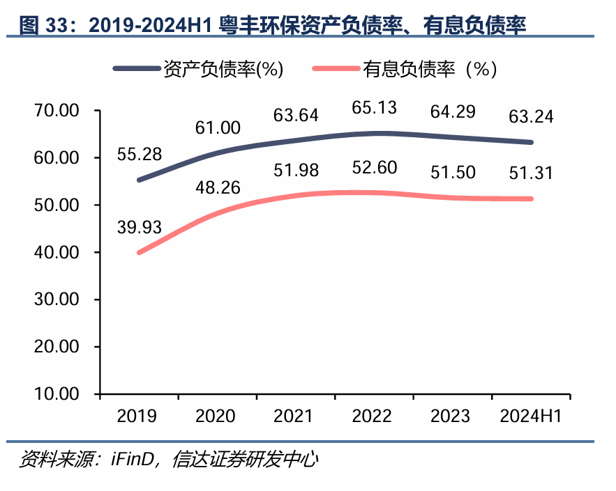 公司期间费用率、负债率整体保持稳定。期间费用率整体保持稳定,截至2024H1公司期间费用率为11.27%。2019-2023年资产负债率保持在65%左右,有息负债率在40%左右。公司收购粤丰环保资金部分来自银行贷款,因此若收购成功短期内会使资产负债率上升。根据公司公告,交易完成后2023年资产负债率将从64.13%上升至75.6%,但同时公司盈利及现金流增厚,负债率有望伴随有息负债到期还款而逐步回到正常水平。