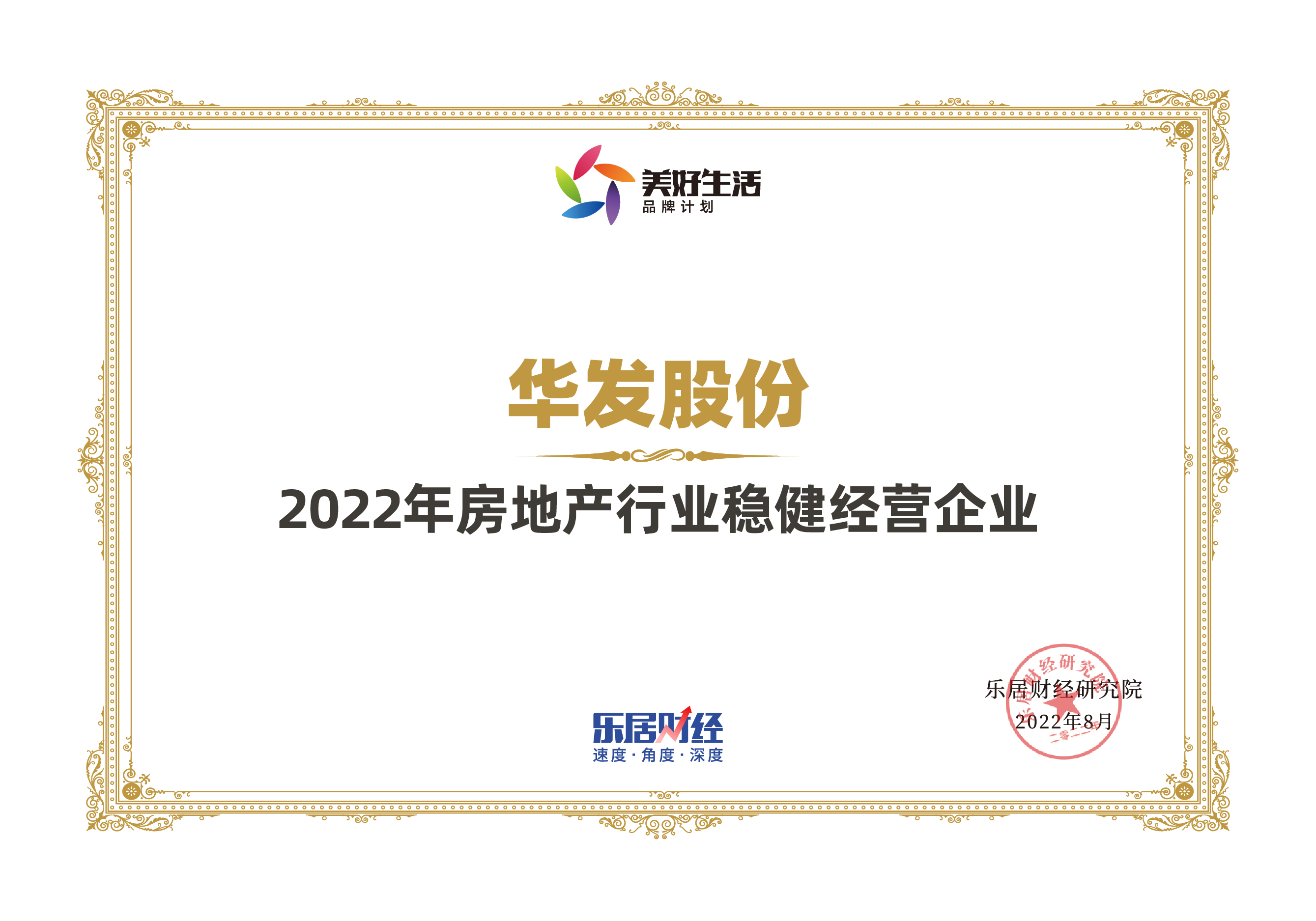 “2022年房地产行业稳健经营企业”由乐居财经研究院通过研究和结合行业内专家评价,从建立在合规管理、健全的经营管理方针的基础上,通过人员管理、核心产品等方面的标准化运营尺度,达到持续增长的房企评选得出,表彰具备良好运营模式,利润获得最大程度上的持续增长的优秀品牌企业。