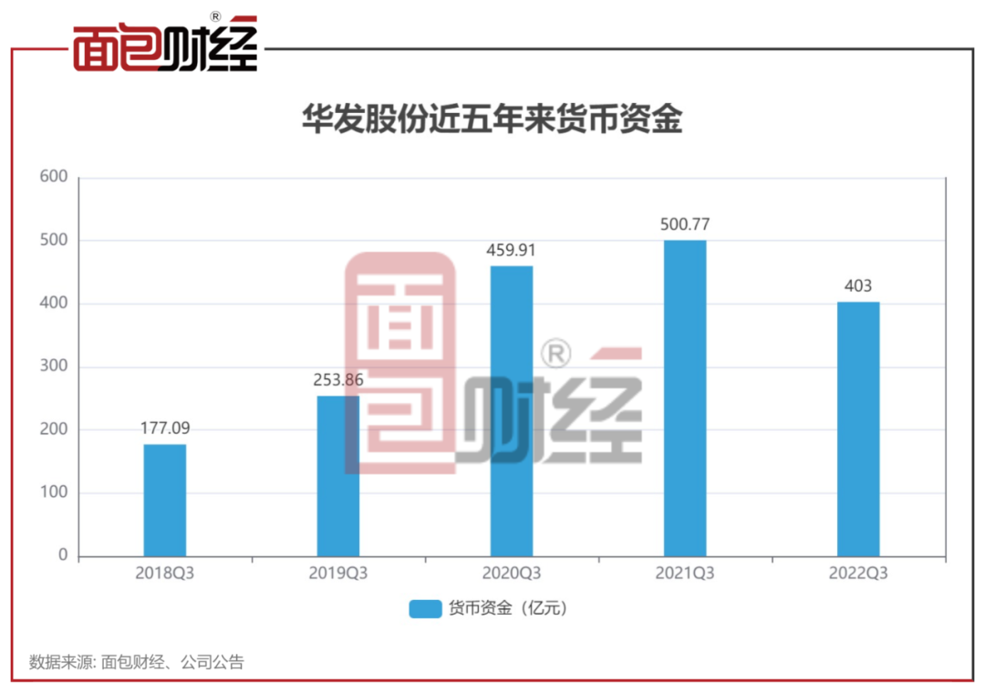 大举拿地之下,华发股份近五年来三季度末货币资金首次出现下滑。2022年三季度末,华发股份货币资金约为403亿,同比降低19.52%。