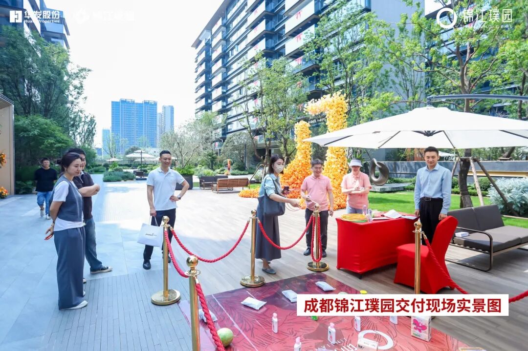 在统一的交付服务之上,还针对不同城市的项目,结合地域特色与项目定位,打造独一无二的归家体验。佛山·滨江府以"归家盛典"营造喜庆氛围,昆明·书香云海通过红毯鲜花构筑归家礼序,而成都锦江璞园创新推出“游园式交付”,以互动体验重塑归家场景,实现从交付仪式到沉浸体验的全面升级。