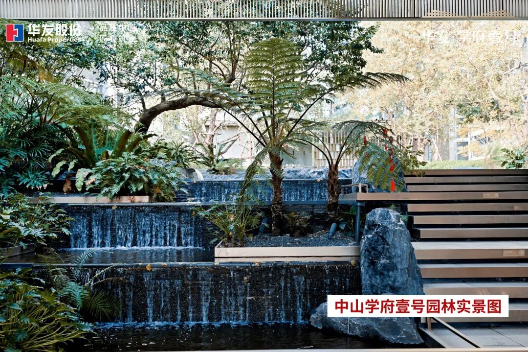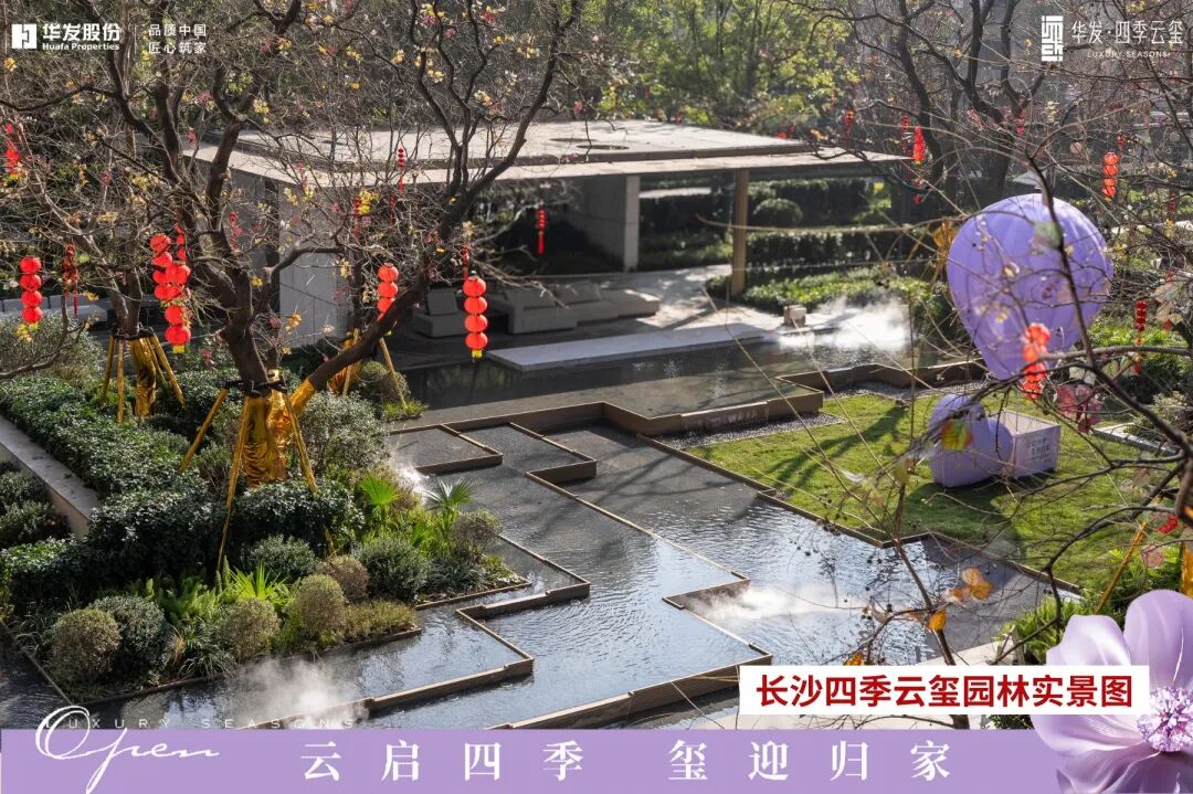 走进园林,场景化的营造逻辑进一步展开。中山华发学府壹号以“书院园林”为脉络,形成“入园即静、移步易景”的沉浸氛围。长沙四季云玺则通过“一轴两环多模块”的结构,以中央水景与精致绿化,成为业主归家仪式的视觉焦点。