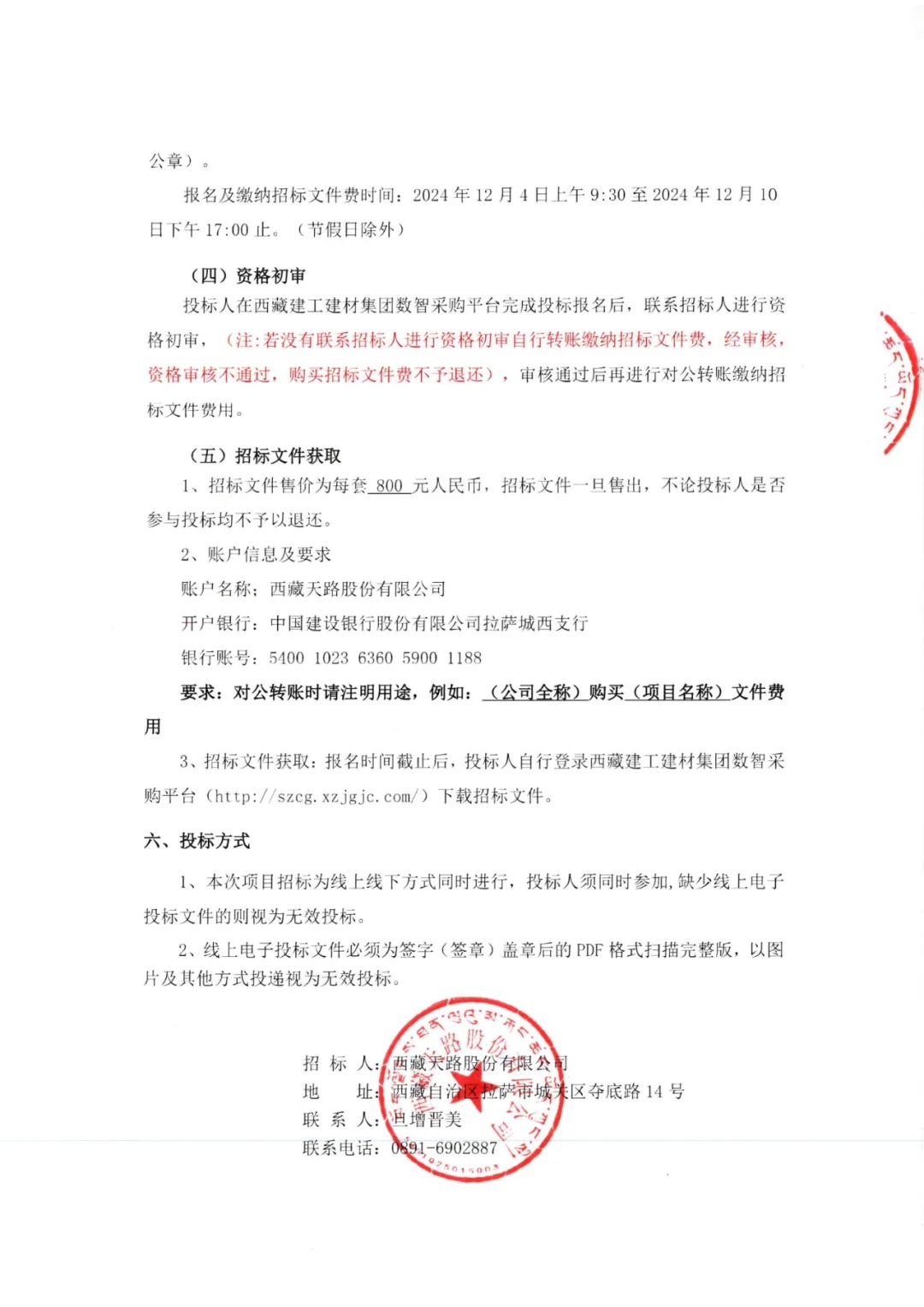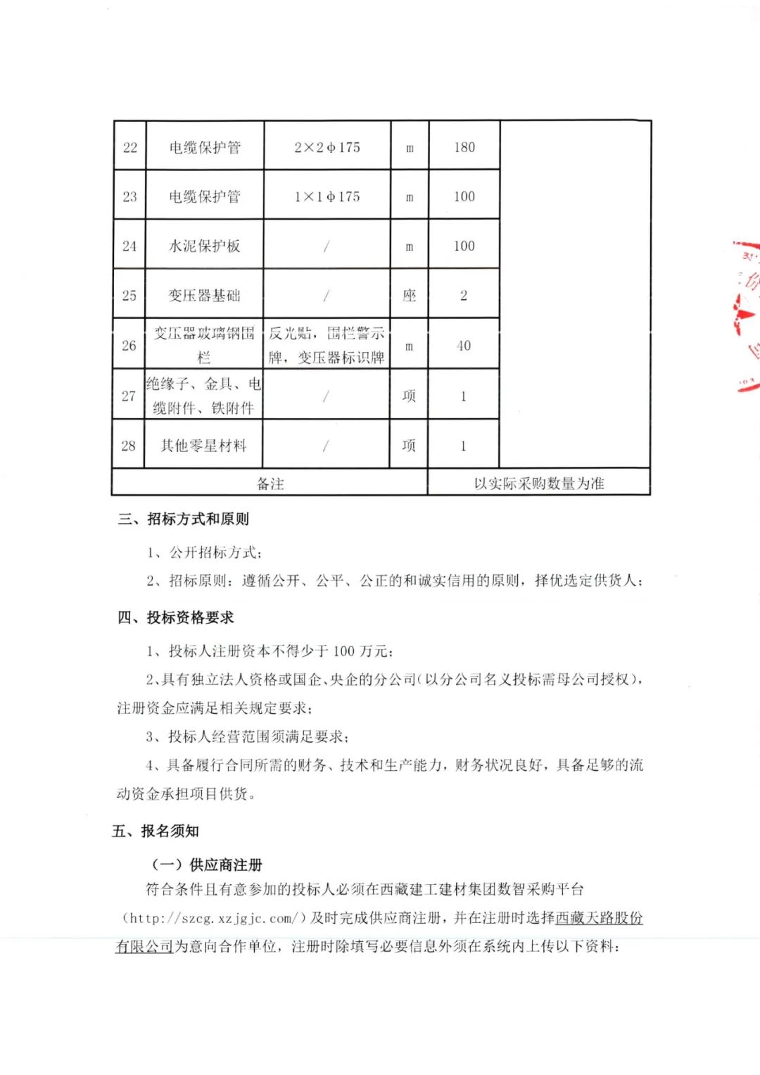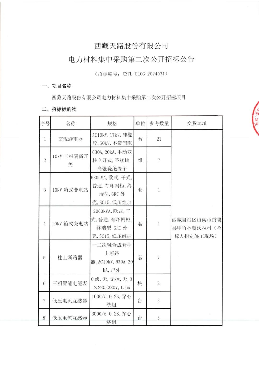 招标公告丨西藏天路股份有限公司电力材料集中采购第二次公开招标公告