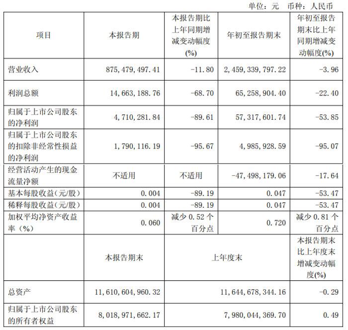 从年初至 9 月 30 日的累计数据看,公司整体经营情况同样面临挑战:累计实现营业收入 245933.98 万元,同比下降 3.96%;累计利润总额 6525.89 万元,同比减少 22.40%;归属于上市公司股东的累计净利润 5731.76 万元,同比降幅达 53.85%;扣除非经常性损益后的累计净利润仅 498.59 万元,同比骤降 95.07%,核心业务的盈利贡献持续减弱。