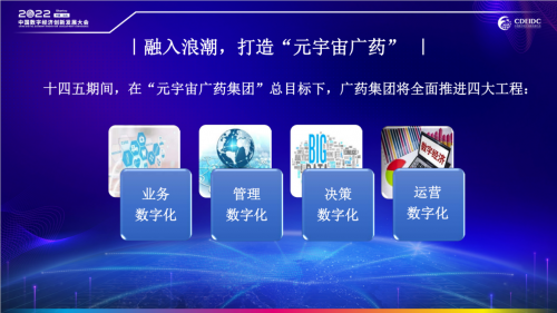 数字化转型作为广药集团“十四五”规划的重点工作之一,广药集团提出了“元宇宙广药”的总目标,加快建设“数智广药”,全力打造医药健康行业数字化转型新样板、国企数字经济新标杆。
