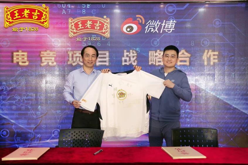 与微博华南品牌总经理曾嵘赠送战队签名队服合照