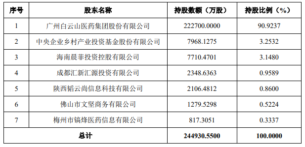 截至白云山本次公告日期(12月19日),广州医药的持股结构: