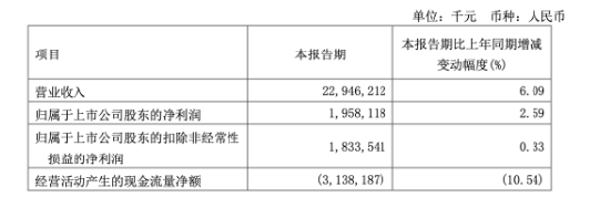 2024年第一季度,白云山实现营业收入229.46亿元,同比增长6.09%;净利润19.58亿元,同比增长2.59%。